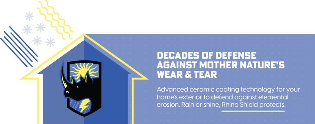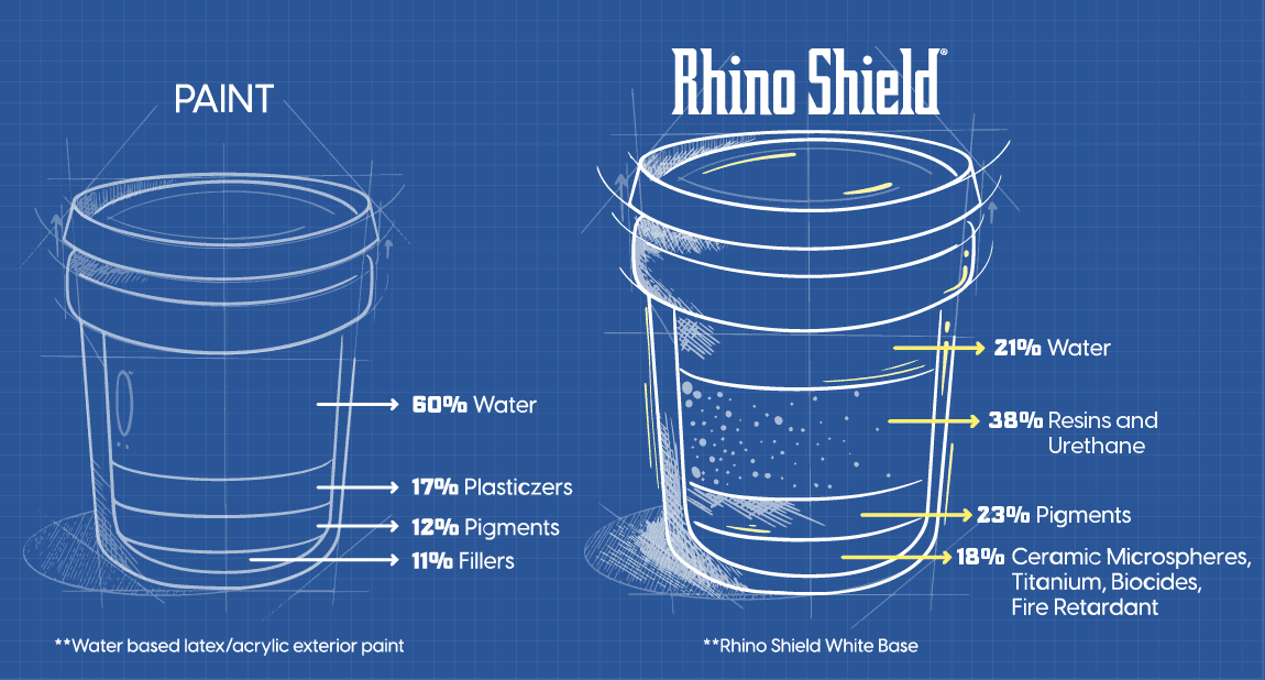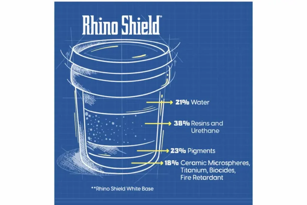 Rhino Shield includes advanced elements like titanium dioxide for fade resistance and biocides for mold and algae prevention.